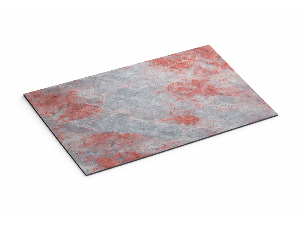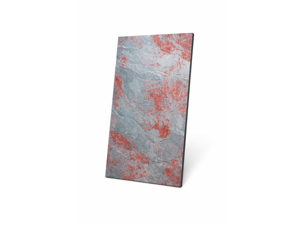 Dekor Black Red zaujme kontrastnou kombináciou tmavosivých až antracitových odtieňov s výraznými červenými akcentmi, ktoré pripomínajú prirodzené minerálne kresby v kameni. Tento výrazný farebný kontrast dodáva priestoru moderný a odvážny charakter a vytvára silný dizajnový prvok v interiéri aj exteriéri. Každá doska je vďaka prirodzenej štruktúre kameňa originál.