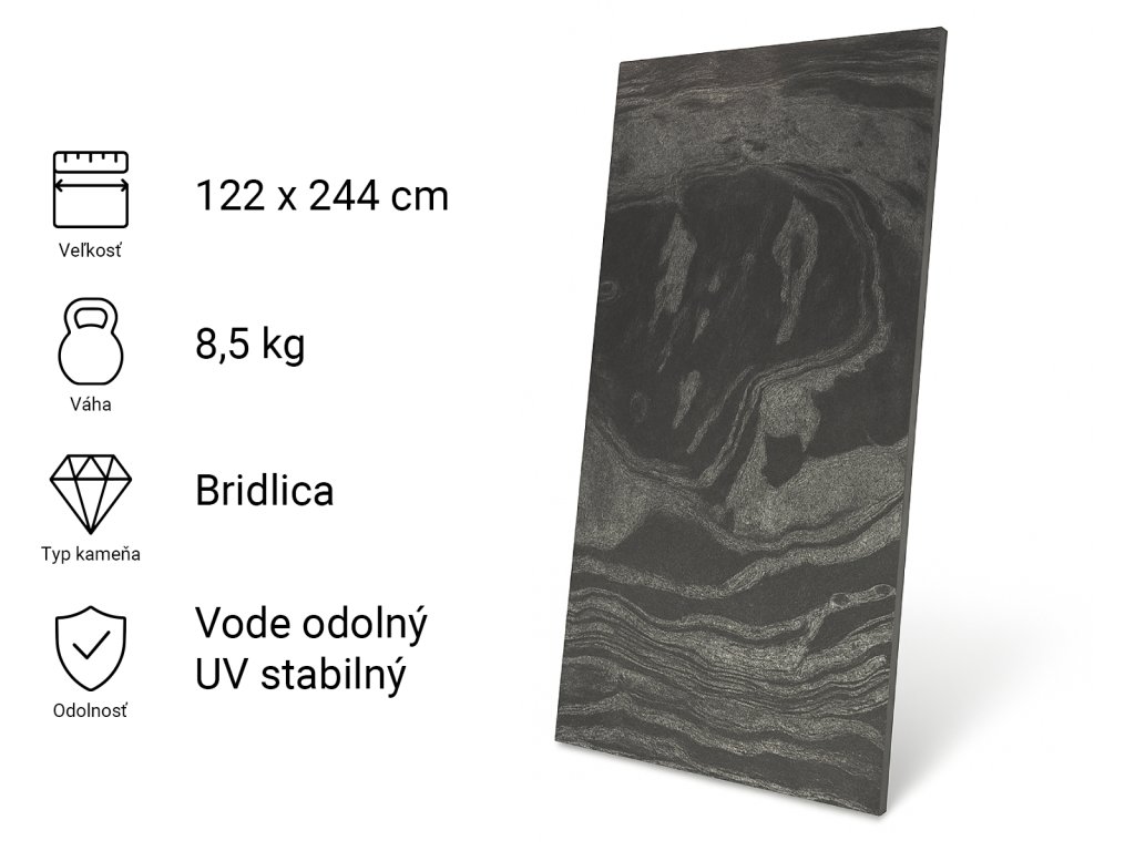 Kamenná dyha, Silver Grey Black, 122x244 cm