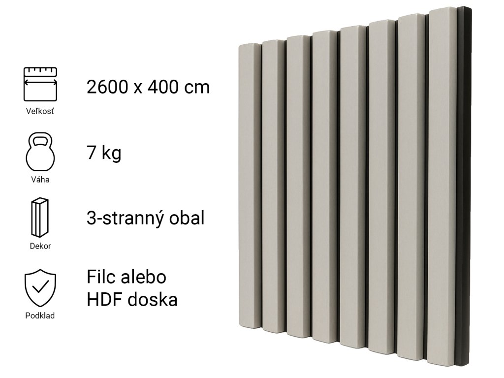 Obkladový panel, Sivá, 2600x400 mm