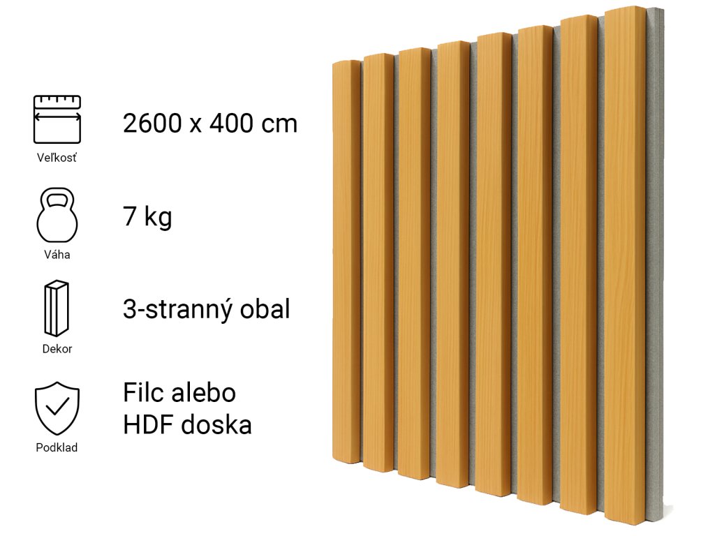 Obkladový panel, sivý filc, Dub, 2600x400 mm
